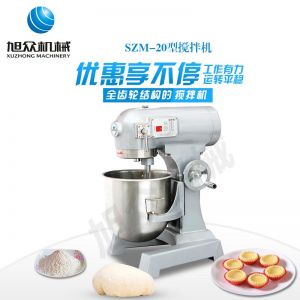 SZM-20型四功能攪拌機(jī),可用于攪拌奶油、蛋糕液、餡料及和制面團(tuán)等操作。打蛋攪拌機(jī)等作攪拌食料、揉和面團(tuán)之用,是生產(chǎn)優(yōu)質(zhì)糕點(diǎn)的理想設(shè)備,適用于酒店、飯店、學(xué)校部門、面包屋以及食品廠家。